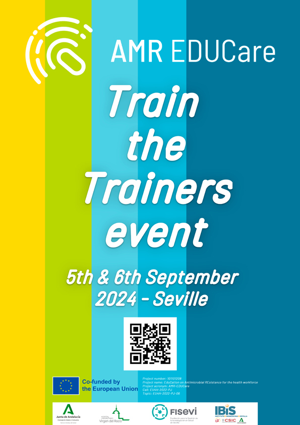AMR EDUCARE TRAIN THE TRAINERS EVENT. Los dias 5-6 de septiembre de 2024 - 10:00 h.. En Salón de Actos IBiS Sevilla.. Reservado a socios del proyecto AMR EDUCARE.
